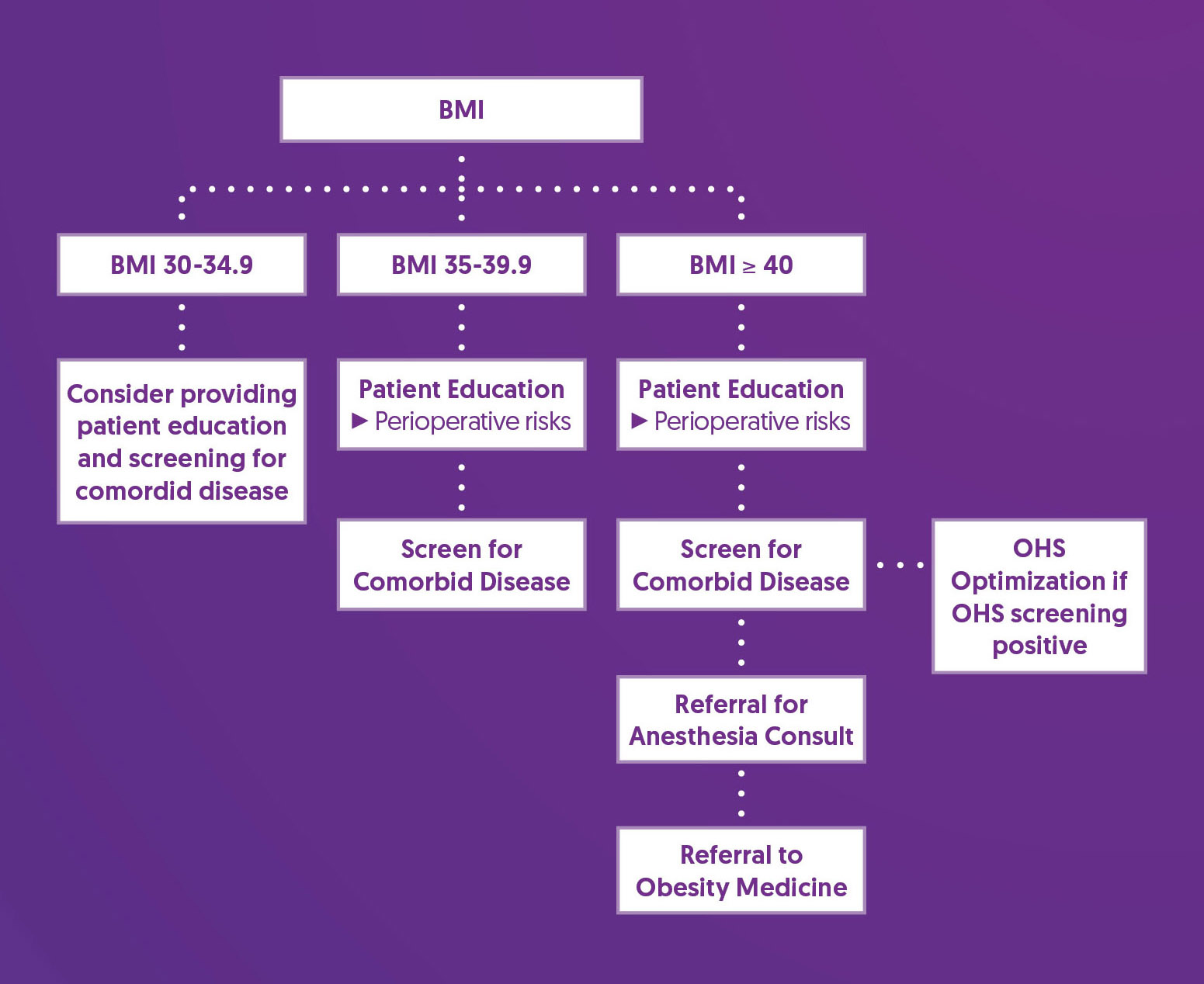 Obesity is linked to several conditions, such as type II diabetes and obstructive sleep apnea, that may increase perioperative risks. Comorbidities may outweigh BMI in assessing these risks. (1-4)